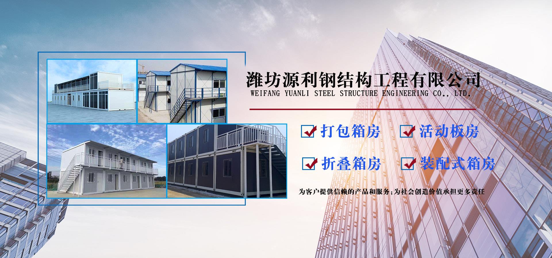 濰坊源利鋼結(jié)構(gòu)工程有限公司成立于2015年,是一家從事活動(dòng)房屋,鋼結(jié)構(gòu)設(shè)計(jì)、制作、安裝為一體的公司。公司坐落于風(fēng)景秀麗的藍(lán)寶石之鄉(xiāng)昌樂(lè)開(kāi)發(fā)區(qū),占地約60畝,年加工生產(chǎn)能力到40萬(wàn)平米,現(xiàn)已發(fā)展成本地較大的鋼結(jié)構(gòu)企業(yè),同時(shí)也已跨入集成房屋研發(fā)、推廣企業(yè)行列。公司配備了全套的箱房流水線(xiàn)生產(chǎn)設(shè)備,包含了全自動(dòng)冷彎成型設(shè)備、流水自動(dòng)涂裝線(xiàn)、沖壓型材生產(chǎn)線(xiàn)以及全套的配套設(shè)備,標(biāo)準(zhǔn)化、模具化生產(chǎn)加工,年生產(chǎn)5000套打包箱,產(chǎn)品保障。 公司主要產(chǎn)品有:鋼結(jié)構(gòu)工程加工、制作、安裝;各類(lèi)活動(dòng)板房、打包箱房、裝配式箱房、折疊箱房、圍擋、料棚、異型H型鋼、屋面板、墻面板、樓承板,C型鋼,Z型鋼;馬路隔離護(hù)欄等相關(guān)產(chǎn)品。